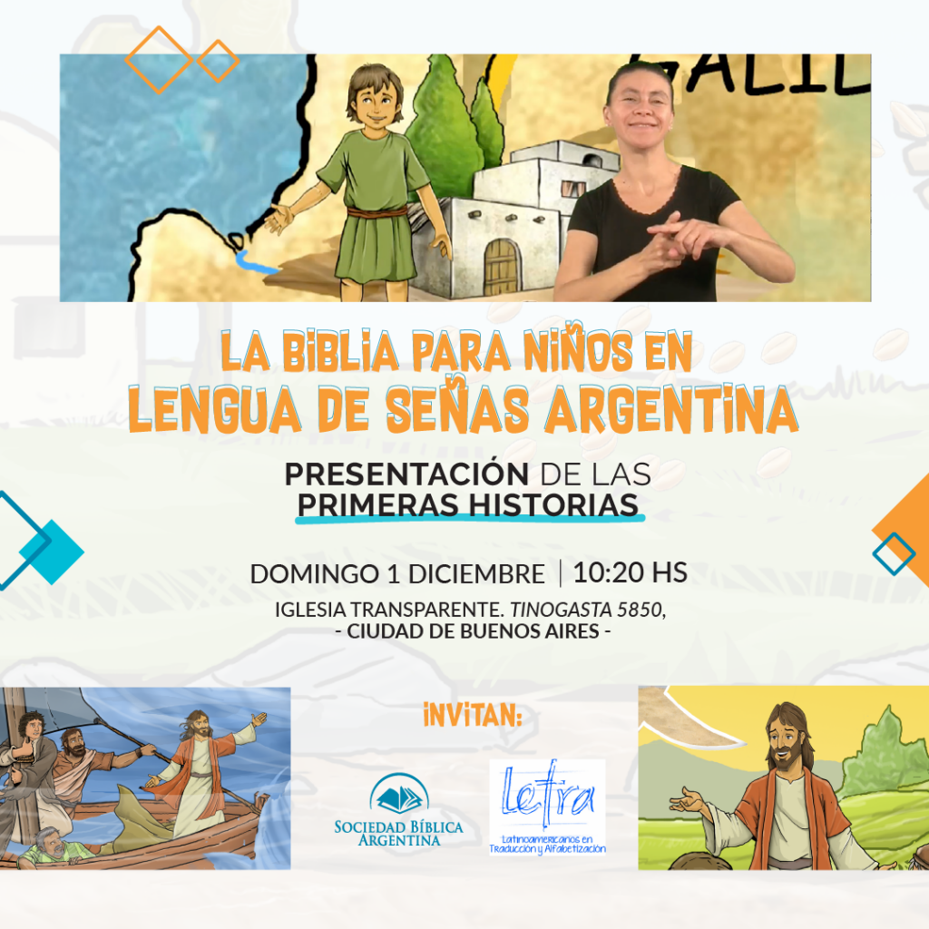 El domingo 1 de diciembre presentaremos las primeras historias de La Biblia para Niños en Lengua de Señas Argentina, proyecto realizado por Sociedad Bíblica Argentina y Letra, Latinoamericanos en Traducción y Alfabetización.
